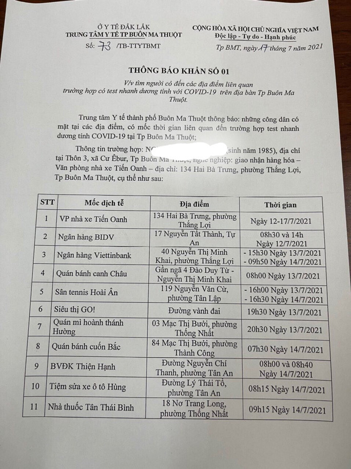 | Thông báo khẩn tìm người tới các địa điểm liên quan đến ca bệnh |