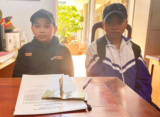 Trên đường đi học về, hai học sinh lớp 6 ở Đắk Lắk nhặt được tiền (1,5 triệu đồng) liền đem đến Công an xã để nhờ thông báo, trả lại cho người đánh rơi.
