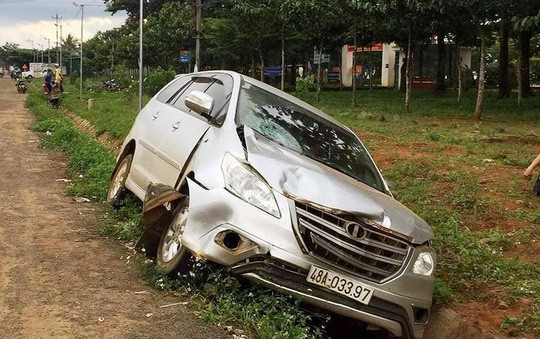 Chiếc xe con do trung tá Tuấn điều khiển tại hiện trường vụ tai nạn. Ảnh: C.Nguyên