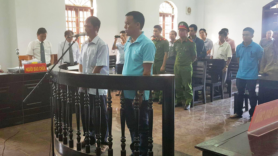 Bị cáo Toàn (áo xanh) và bị cáo Trọng tại phiên xét xử.
