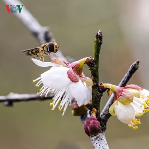 Hình ảnh hoa anh đào được ghi lại ven đường Mộc Châu - Sơn La, với thân cành mọc thẳng, khẳng khiu mang đậm nét hoang sơ...