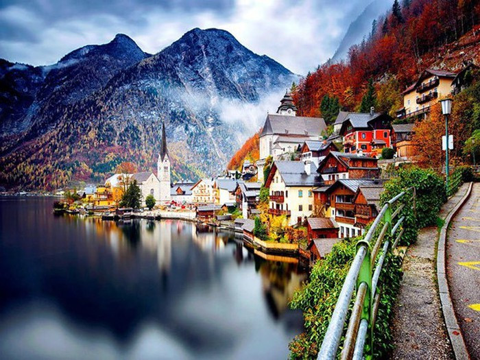 Với lịch sử hơn 7.000 năm, làng cổ Hallstatt ở Áo là một trong những thị trấn đẹp nhất châu Âu. Soi bóng xuống hồ Hallstatt See, ngôi làng như như dịu dàng hơn khi mùa thu gõ cửa. Thiên nhiên từ miền Bắc đến miền Nam châu Âu bỗng khoác lên mình màu áo mới quyến rũ đến kỳ lạ. Ảnh: Alamy.