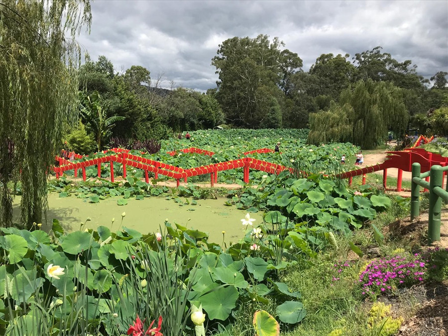 Đầm sen nói trên nằm ở bang Victoria với diện tích trên 50,000 mét vuông. Vào tháng 2, nơi này đang bước nở rộ với hàng ngàn hoa sen, hoa súng đua nhau khoe sắc.