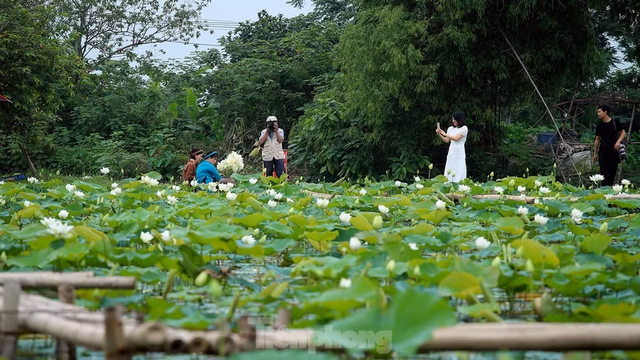 Đầm sen trắng rộng hơn 1.000m2 ở xã Tam Hưng, huyện Thanh Oai (Hà Nội) đang vào mùa nở rộ, thu hút đông đảo giới trẻ đến tham quan và chụp ảnh.