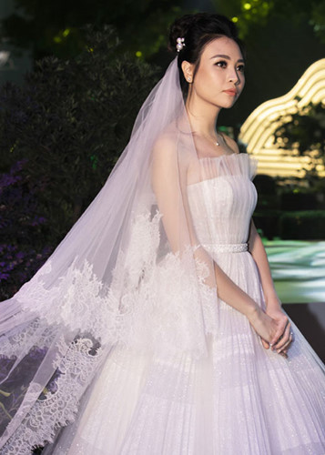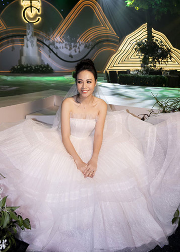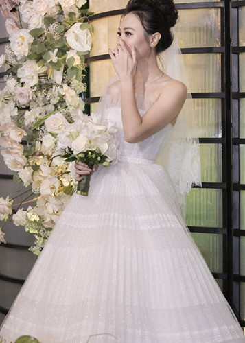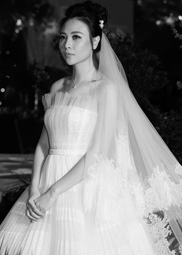 Đàm Thu Trang đẹp lộng lẫy trong chiếc váy cưới trắng.