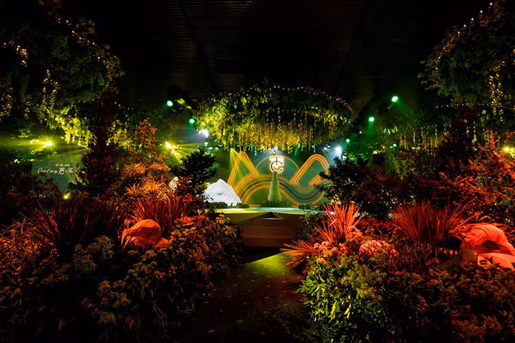 Không gian lễ cưới của Cường Đô la và Đàm Thu Trang vô cùng lộng lẫy, sang trọng.