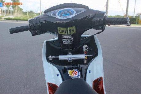 Ở phía trên tay lái của chiếc Future chỉ có một số món "đồ chơi" nhỏ như cặp gù nhôm CNC và tay phanh CRG. Trong khi đó, một cây trợ lực Ohlins đã được gắn bên dưới đầu xe, khiến chiếc Future trở nên ổn định hơn ở tốc độ cao.