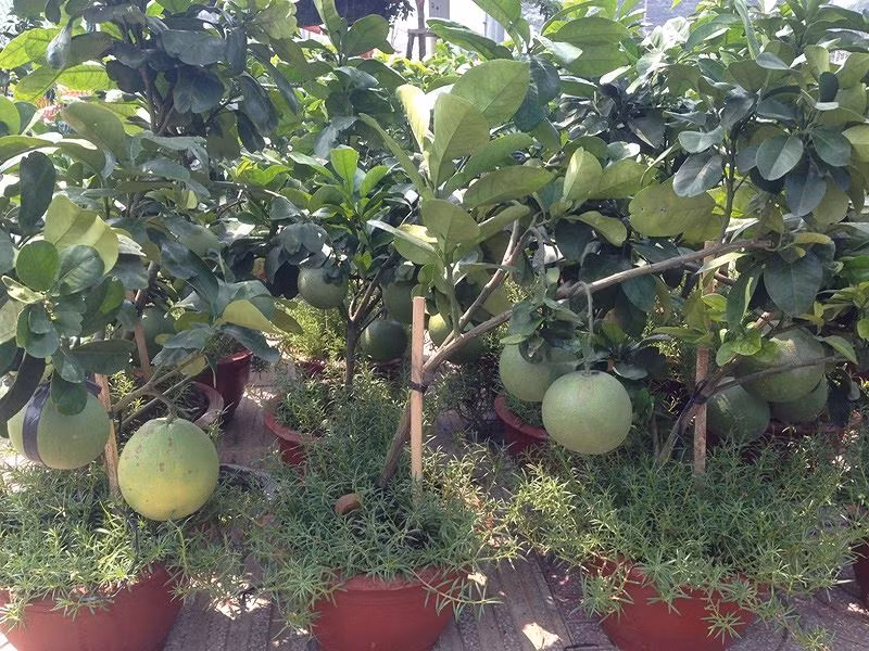 Những cây bưởi diễn cũng được đưa vào chậu kiểng, giá từ 2-3 triệu đồng, đến vài chục triệu đồng/chậu
