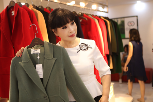 Lựa chọn cho mình chiếc váy liền cùng áo khoác ngắn, nghệ sĩ Lan Hương rất hài lòng với những sản phẩm này.
