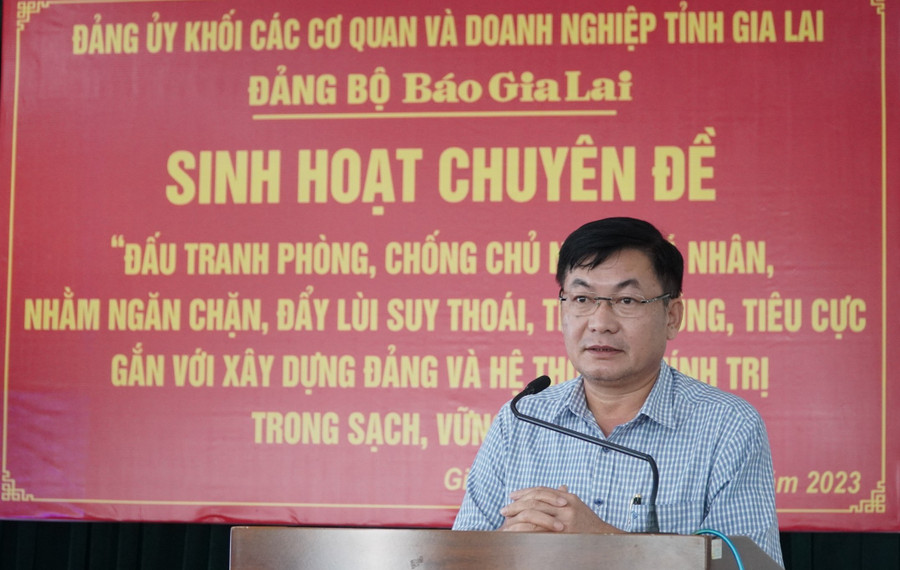 Phát biểu tại buổi sinh hoạt chuyên đề, Bí thư Đảng ủy, Tổng Biên tập Báo Gia Lai Huỳnh Kiên nhấn mạnh: Việc quán triệt tư tưởng chính trị đối với cán bộ, đảng viên thời gian qua rất được Trung ương, Tỉnh ủy quan tâm. Đối với Đảng bộ Báo Gia Lai, việc quán triệt các văn bản chỉ đạo của Đảng được triển khai thường xuyên, liên tục thông qua hoạt động tuyên truyền trên các ấn phẩm của Báo.
