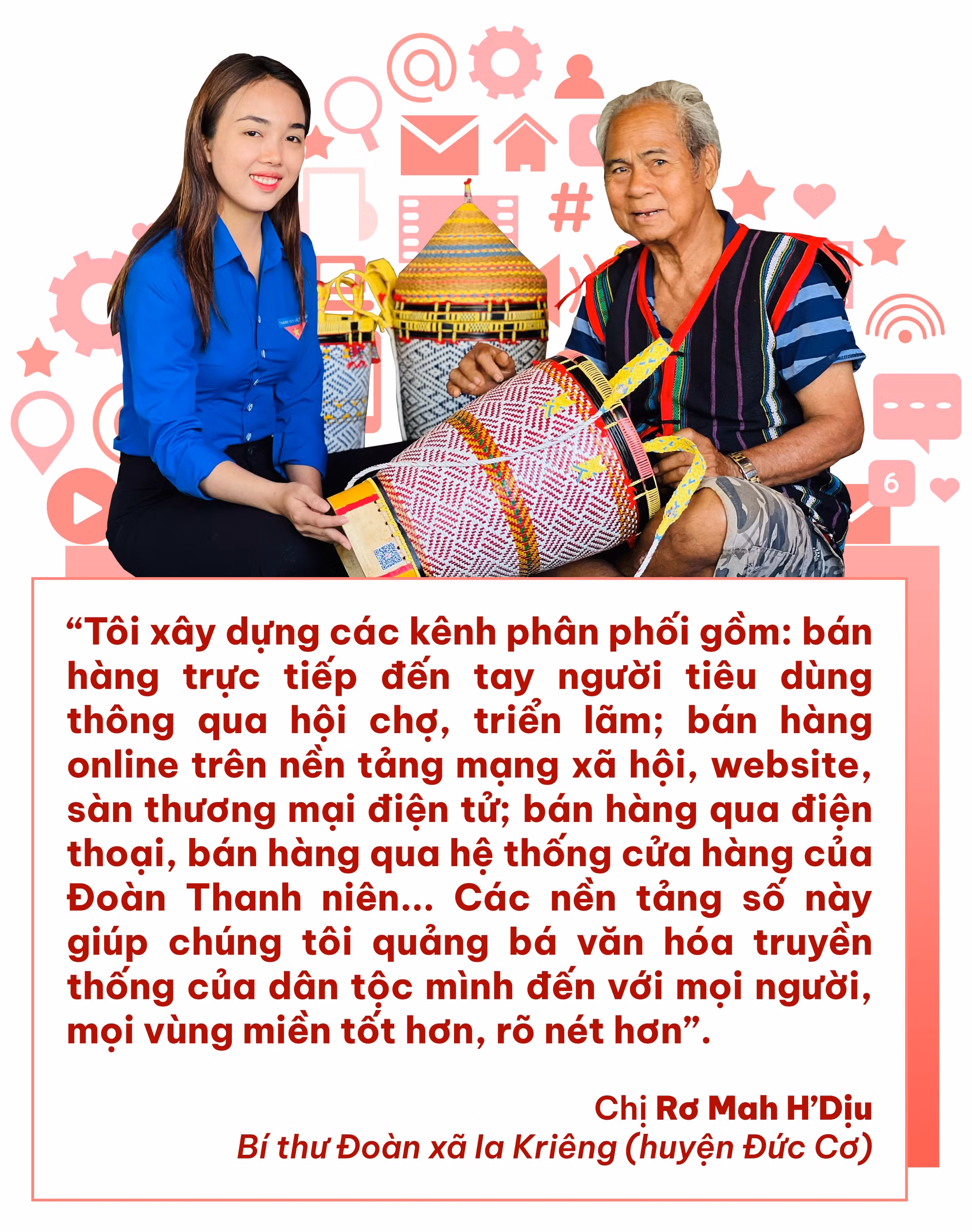 Cũng như chị Viên, chị H’Dịu luôn định hướng rõ mục tiêu của Dự án “Làng nghề đan lát truyền thống thanh niên” là bảo tồn nét đẹp văn hóa của đồng bào dân tộc thiểu số ở Tây Nguyên; đồng thời tạo việc làm cho thanh niên địa phương nhằm cải thiện đời sống, góp phần giảm nghèo bền vững. Không chỉ mang giá trị tinh thần trong việc duy trì và phát huy nét đẹp văn hóa của người Jrai, dự án còn đặt ra mục tiêu phấn đấu đến năm 2024 tạo việc làm cho 20 đoàn viên, thanh niên.