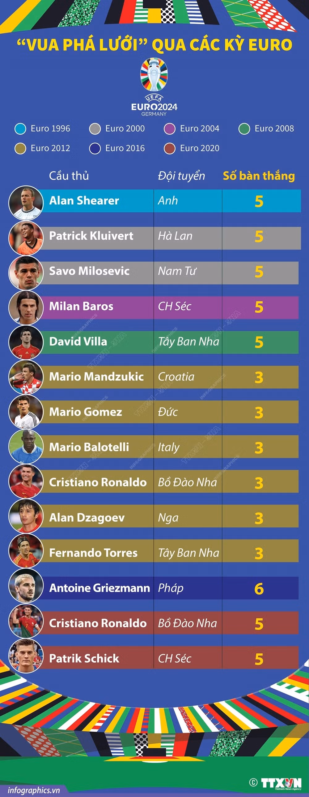 Giải thưởng Vua phá lưới EURO chính thức được trao từ năm 1996.