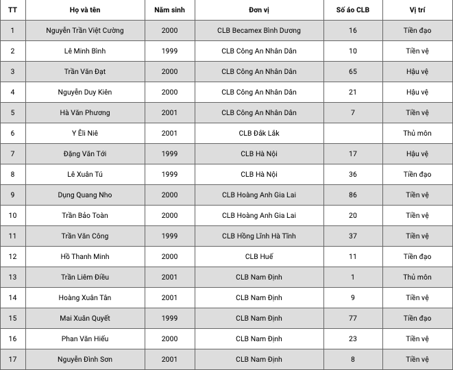 | U22 Việt Nam hội quân từ ngày 11.5 đến 6.6. Ảnh: Hoài Thu |