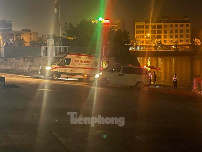 Đến 23h đêm, thi thể của 2 nạn nhân được xe cứu thương chở tới Bệnh viện Bãi Cháy, TP. Hạ Long, Quảng Ninh.