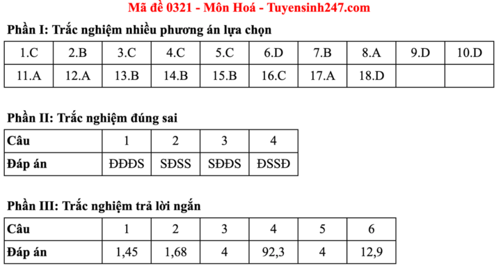 Đáp án đề thi môn Hoá học tốt nghiệp THPT 2025 Full mã đề. VTC News cập nhật gợi ý lời giải, đáp án đề thi THPT 2025 môn Hoá học nhanh và chính xác nhất.