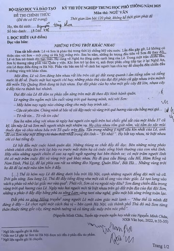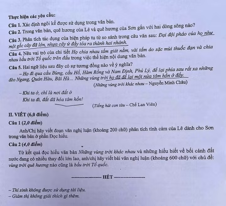 Đề thi môn Ngữ văn kỳ thi tốt nghiệp THPT 2025