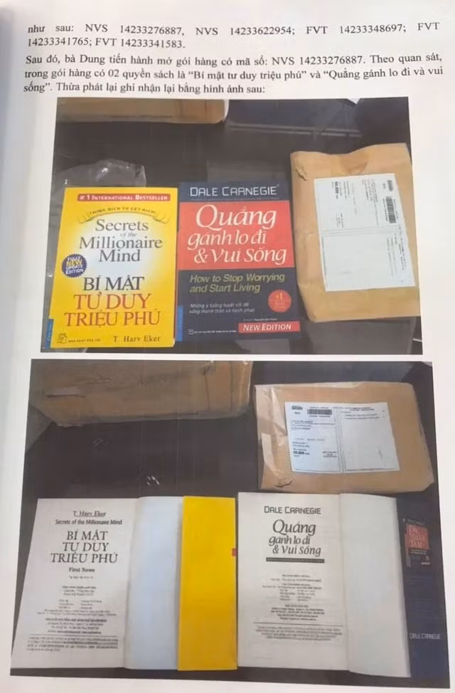 Sau đó, mời Công ty Thừa Phát Lại đến tiến hành mở bao hàng và lập vi bằng. Bất ngờ, 128 đơn hàng ngẫu nhiên đều là sách giả và đã được lập vi bằng.