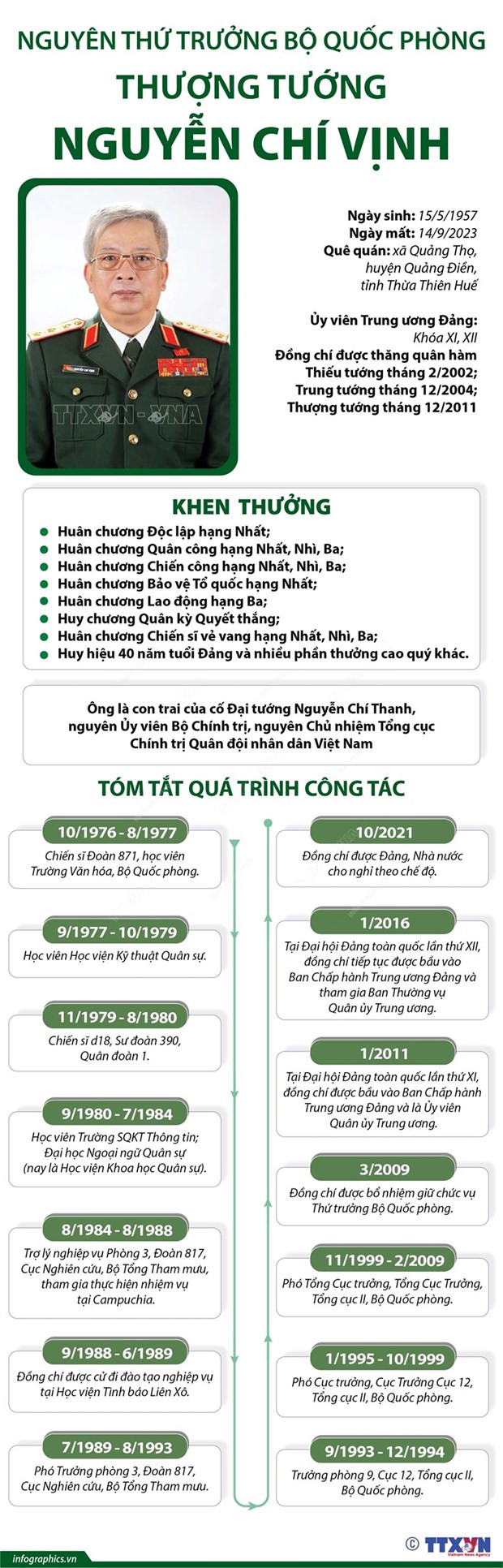 Dành cả cuộc đời để cống hiến vì độc lập, tự chủ và nền hòa bình bền vững của đất nước, trong hơn 40 năm quân ngũ, Thượng tướng Nguyễn Chí Vịnh, nguyên Thứ trưởng Bộ Quốc phòng đã để lại dấu ấn sâu sắc trên những lĩnh vực mà ông phụ trách.