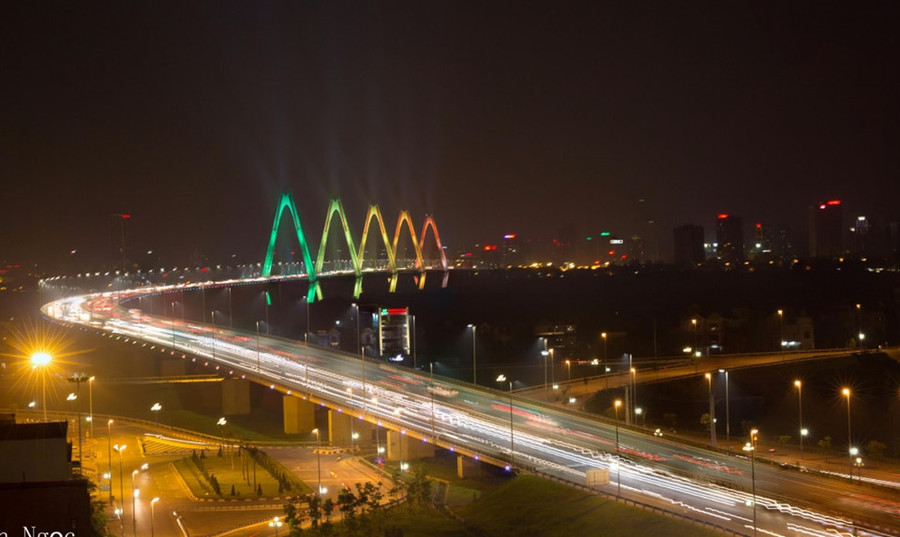 Những cây cầu hoành tráng, đẹp mắt mang ý nghĩa đặc biệt là đề tài khá phổ biến được độc giả lựa chọn trong cuộc thi ảnh "Dấu ấn Việt Nam". Bức ảnh chụp cầu Nhật Tân (Hà Nội) trong tuần đầu tiên được trang bị hệ thống đèn chiếu sáng mới. Cây cầu bắc qua sông Hồng, nối quận Tây Hồ với huyện Đông Anh, là cầu dây văng dài nhất Việt Nam và được cho là biểu tượng mới, niềm tự hào của thủ đô hiện đại. 5 nhịp dây văng tượng trưng cho 5 cửa ô.