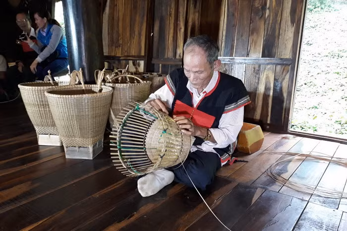 Biểu diễn nghề đan lát các vật dụng trong gia đình như gùi, rổ…