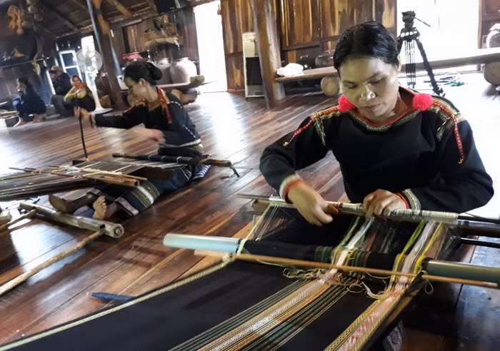 Biểu diễn dệt thổ cẩm truyền thống của dân tộc Ê Đê
