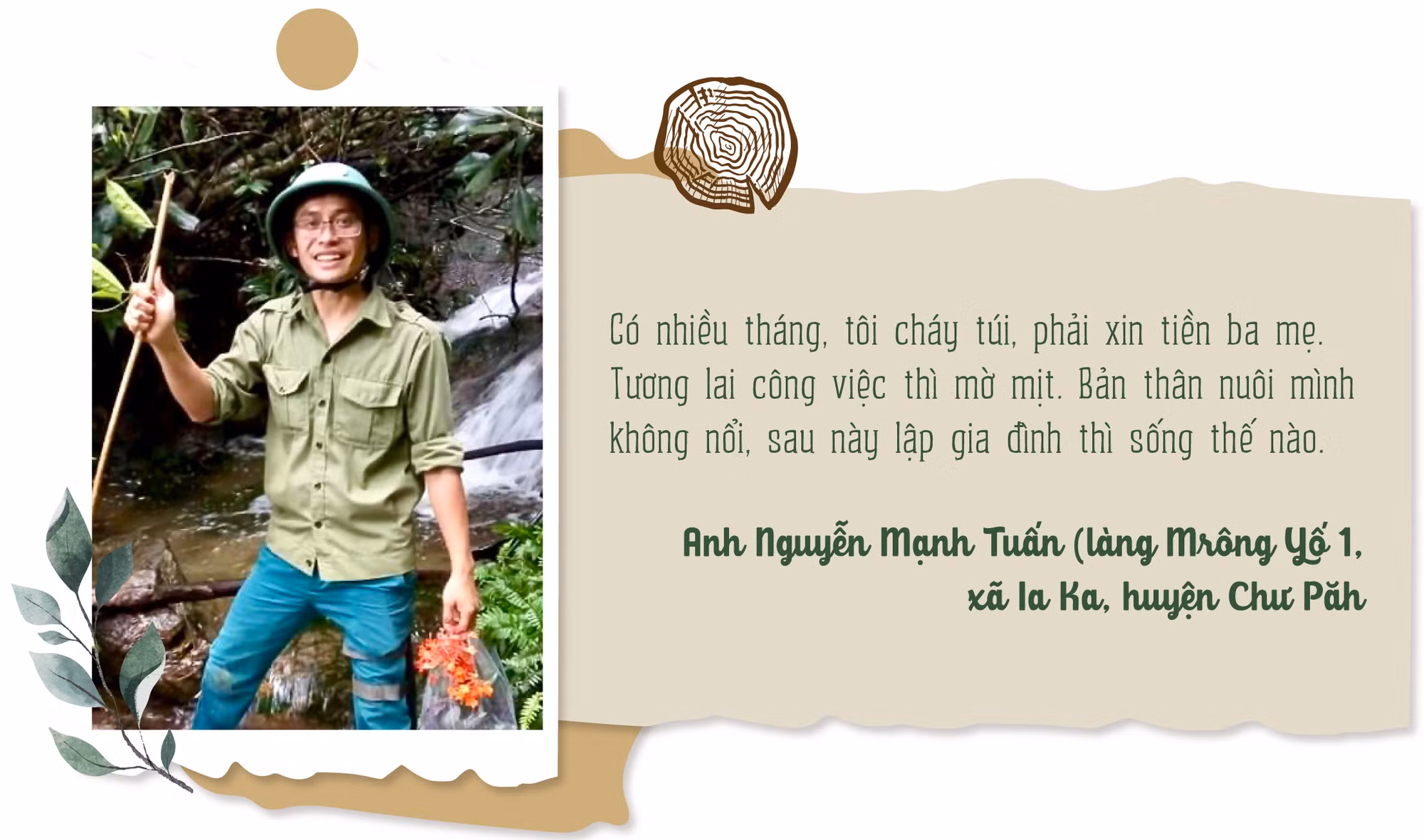 Đầu năm 2022, anh Nguyễn Mạnh Tuấn (làng Mrông Yố 1, xã Ia Ka, huyện Chư Păh) đột ngột quyết định... dứt áo ra đi sau nhiều năm gắn bó với nghề. Tốt nghiệp chuyên ngành Quản lý tài nguyên rừng, anh Tuấn hăm hở đến Ban Quản lý rừng phòng hộ Ia Ly (huyện Chư Păh) nhận việc. Từ nhân viên hợp đồng năm 2017, anh nỗ lực thi đậu biên chế vào năm 2020. Ngoài 35 tuổi, chàng thanh niên nhiều hoài bão với nghề không ngại khó, ngại khổ nhưng lại “dừng bước” trước khoản lương 3,2 triệu đồng/tháng và số tiền công tác phí ít ỏi.