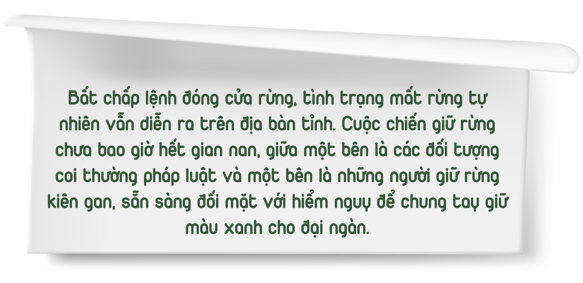 Chỉ chưa đầy 3 năm, toàn tỉnh đã có hơn 100 người làm công tác bảo vệ rừng ở các công ty lâm nghiệp, ban quản lý rừng xin nghỉ việc. Đó là chưa tính đến 10 viên chức quản lý bảo vệ rừng tại các ban quản lý rừng phòng hộ thuộc Sở Nông nghiệp và PTNT xin nghỉ, thôi việc; thậm chí, lãnh đạo của một số hạt kiểm lâm cũng “rũ áo từ quan” vì nhiều lý do.