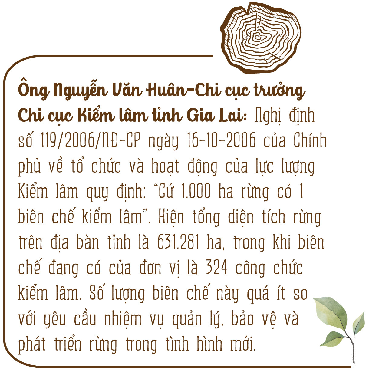 Còn ông Hồ Ngọc Thọ-Giám đốc Công ty TNHH một thành viên Lâm nghiệp Krông Pa (huyện Kbang) cũng than thở về 13 trường hợp bỏ việc gần đây. “Trong số này, có đến 3 người gắn bó với nghề 7-8 năm nhưng cũng có trường hợp chưa làm việc ngày nào đã xin nghỉ. Hợp đồng ký chưa ráo mực, họ vác ba lô lên đến chốt bảo vệ rừng, nhìn xung quanh một lúc thì đã vội trở về, chọn công việc khác thu nhập tương đương hoặc thấp hơn nhưng bù lại được ở gần vợ con, đỡ áp lực hơn so với thời gian làm bảo vệ rừng. Dù mức lương đã có nhiều cải thiện hơn so với trước đây nhưng lâu nay vẫn không tuyển được người”-ông Thọ nói.