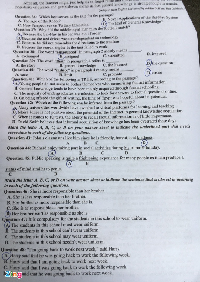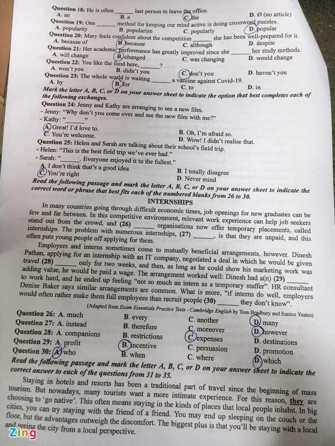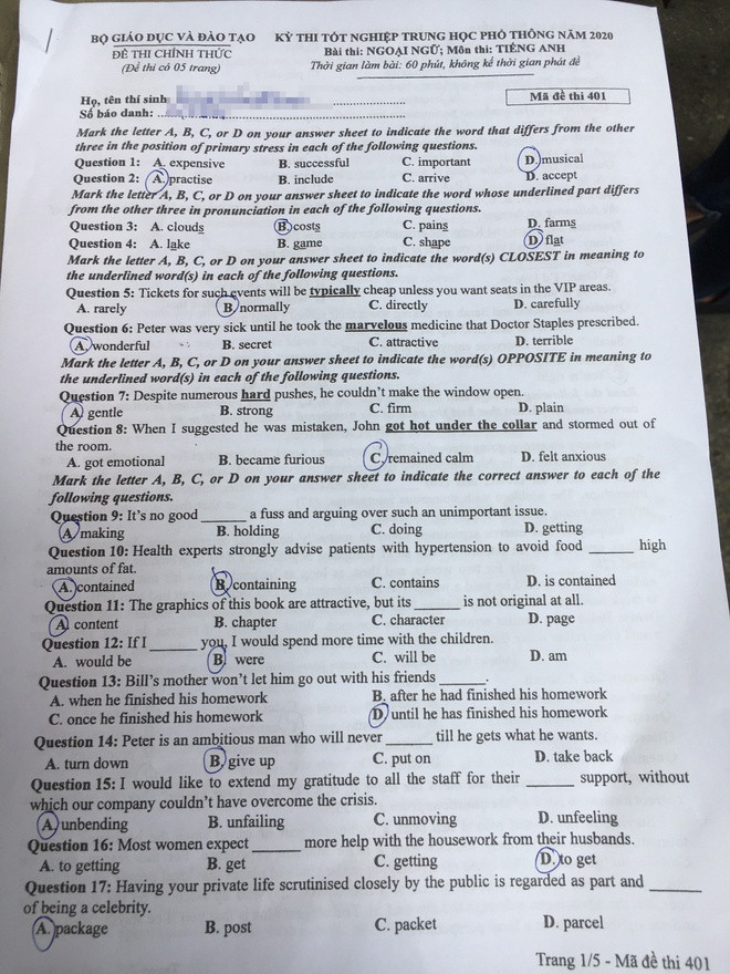 Đề thi, đáp án môn Tiếng Anh tốt nghiệp THPT 2020