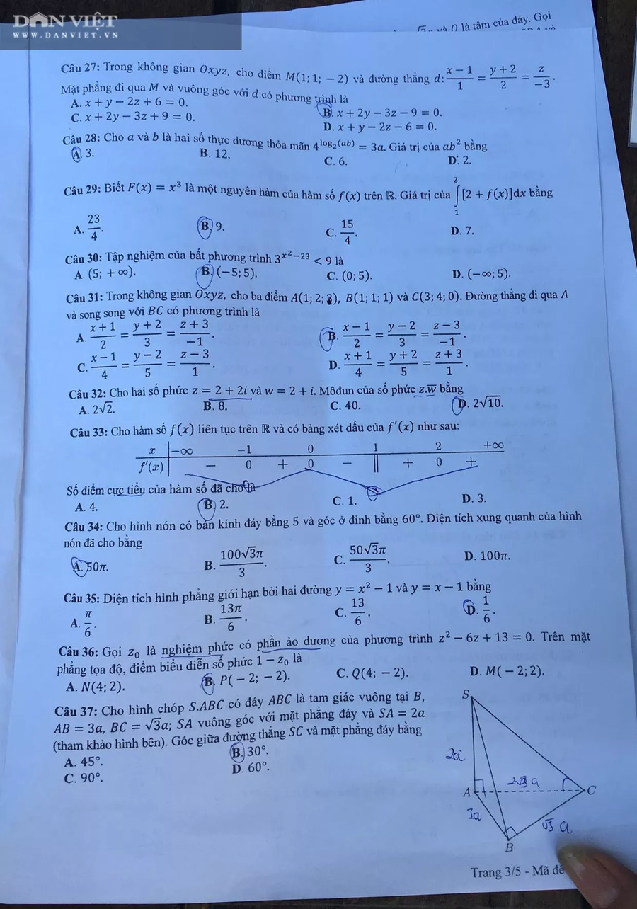 Đề thi Toán THPT Quốc gia chính thức của Bộ GDĐT |