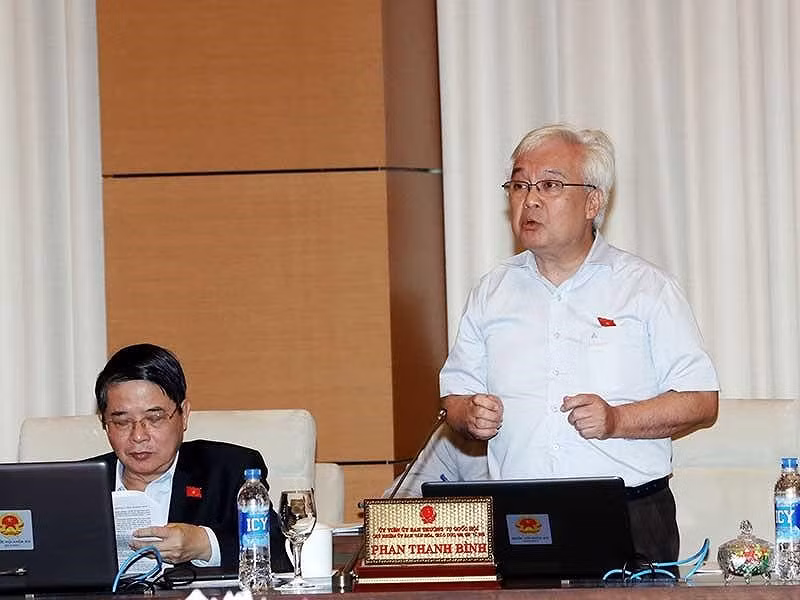 Chủ nhiệm Ủy ban Văn hóa, Giáo dục, Thanh niên, Thiếu niên và Nhi đồng của Quốc hội Phan Thanh Bình phát biểu. Ảnh: TTXVN