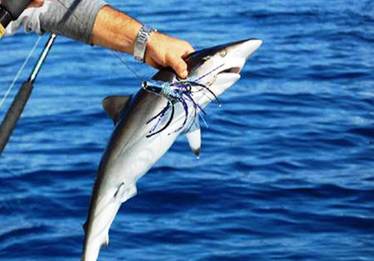 Câu cá mập hiệu quả nhất vào những đêm trăng sáng. Ánh trăng sẽ làm mờ ánh bạc của các con người biển bám vào các thẻo câu. Nước biển lấp lánh ánh trăng khiến cá mập hoa mắt không phát giác được lưỡi câu có ngạnh sắc. Khi thấy phao động đậy là biết cá dính câu.