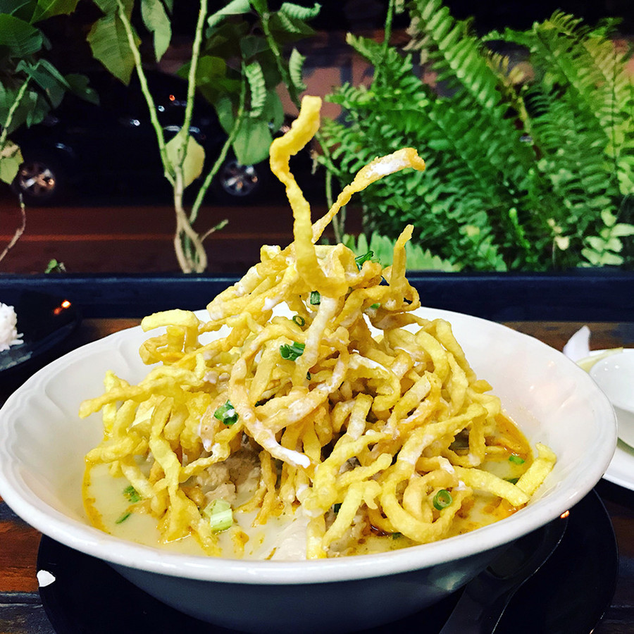 Nghe theo lời quảng cáo của cậu bạn người Thái, việc đầu tiên tôi làm là đi tìm món Khaosoi huyền thoại. Nhưng vì quá đói và một số tiệm có tiếng bán Khaosoi ngon trên mạng lúc tìm tới lại đóng cửa nên chúng tôi rẽ đại vào một hàng bên đường.