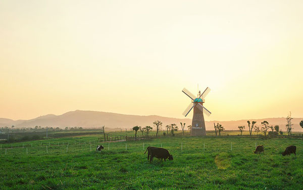 Đây là trang trại bò sữa tiêu chuẩn organic châu Âu đầu tiên tại Việt Nam, nằm cách Đà Lạt khoảng 35km. Đến Vinamilk Organic Milk Farm bạn sẽ cảm nhận nơi đây giống như một Hà Lan thu nhỏ với đồng cỏ xanh mướt bao la, hàng trăm chú bò đang thẩn thơ gặm cỏ và một chiếc cối xay gió khổng lồ.