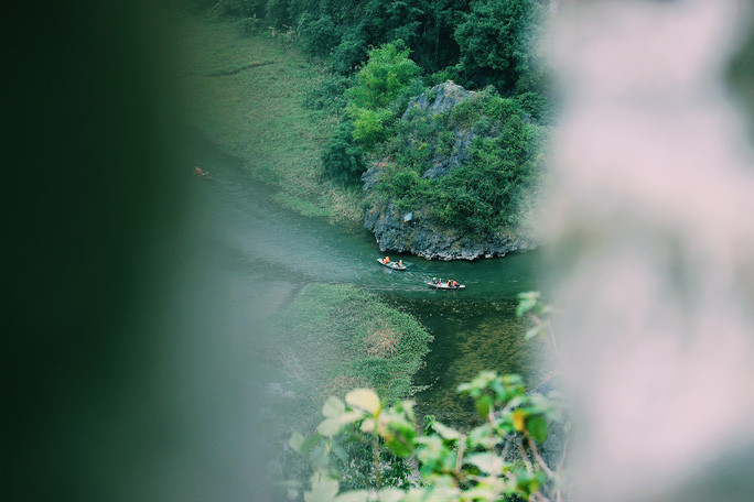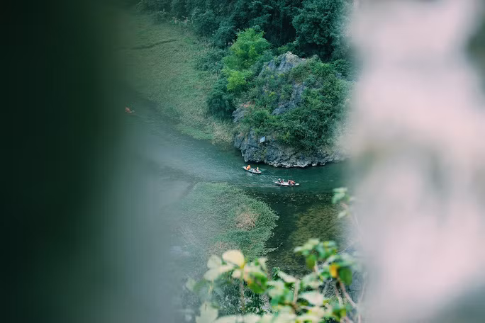 Dòng sông xanh biếc uốn lượn giữa núi non, những chiếc thuyền trôi trong dòng chảy yên bình, một cảm giác gột bỏ bụi trần để tìm về với vùng quê thanh bình.