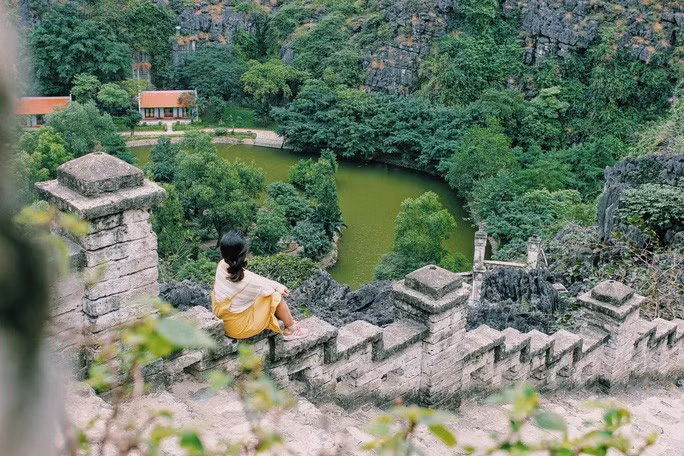 Sau khi đã thử sức dẻo dai với hơn 400 bậc thang, bạn sẽ hoàn toàn đắm mình trong không khí trong lành, mát mẻ và chiêm ngưỡng một khung cảnh Tam Cốc - Bích Động đẹp đến ngẩn ngơ.
