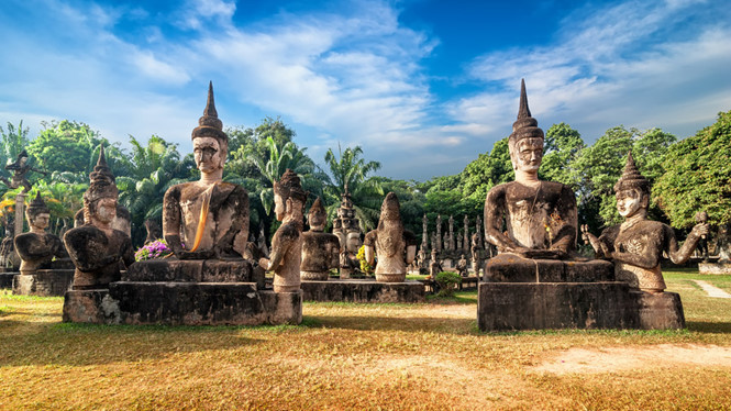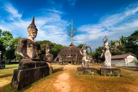 Tầng trên cùng có nhục thân của Bounlua Suliat, đặt trang trọng trong vòm kính. Wat Xiengkuane có tượng Phật nằm khổng lồ, dài 40 mét, vị tha và gần gũi như dáng vẻ Phật tổ nhập niết bàn. Sala Keoku có hàng chục tượng Phật sừng sững, cao vài chục mét, bao dung và thanh thoát nhìn cuộc đời dâu bể.