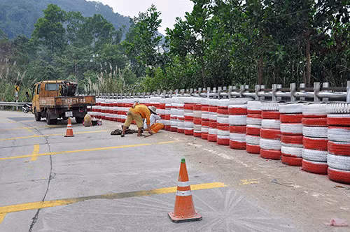 Từ khi lắp tường hộ lan bằng lốp cao su, đèo Lò Xo không còn tai nạn chết người. Ảnh: Lê Kiến