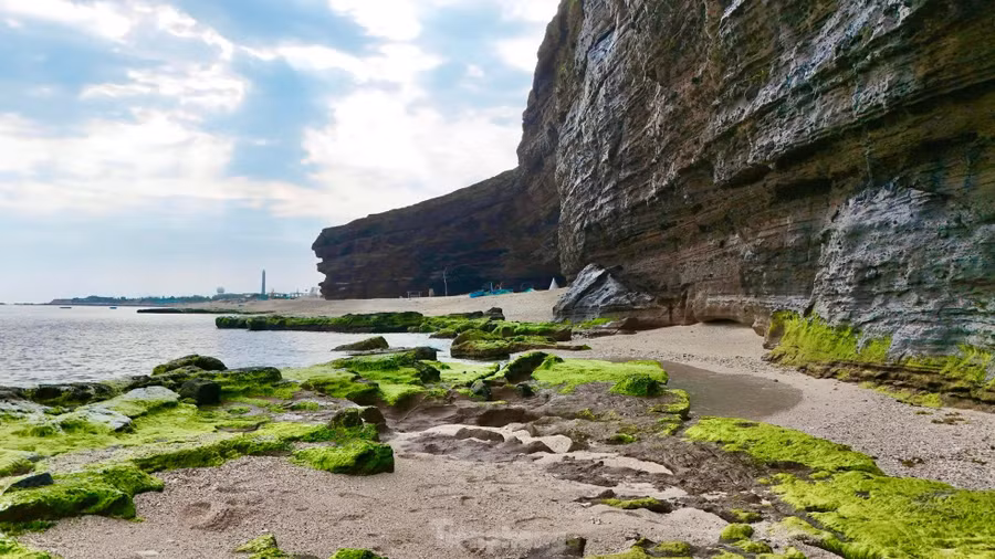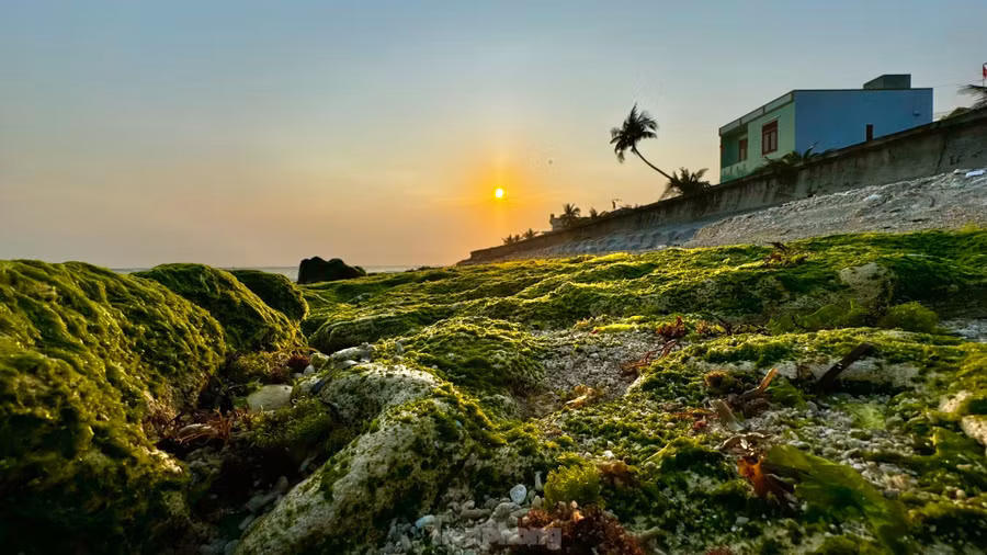 Những bãi đá trầm tích núi lửa triệu năm ngủ quên ở huyện đảo Lý Sơn, tỉnh Quảng Ngãi được thiên nhiên “hóa phép”, phủ kín rêu xanh, tạo cảnh nên bức tranh huyền ảo, thơ mộng hấp dẫn du khách.