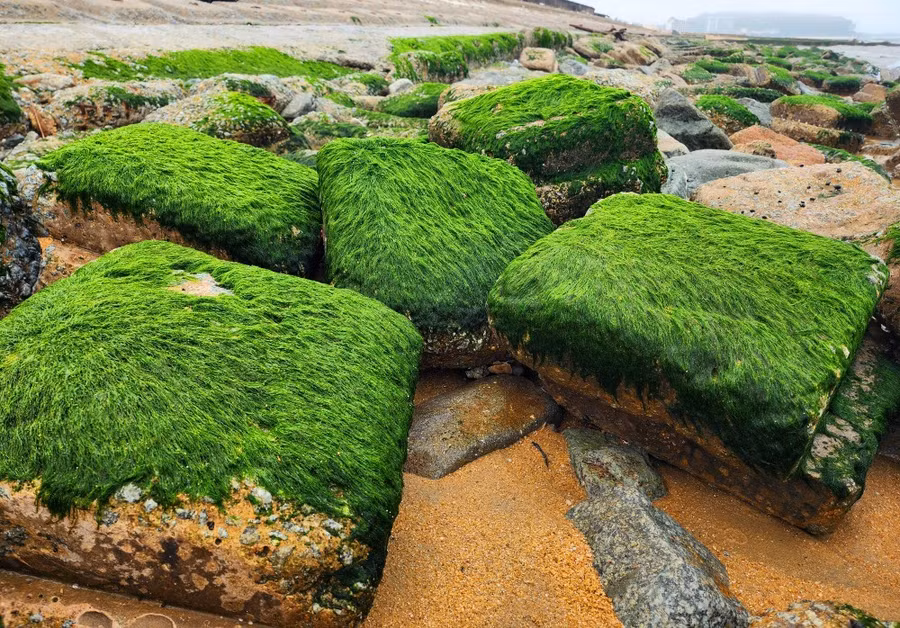 >> Hình ảnh rêu xanh đẹp mắt dọc bờ kè biển Cẩm Nhượng: