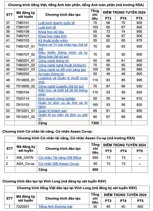 Cụ thể các phương thức xét tuyển sớm gồm: Xét tuyển học sinh giỏi (PT3); Xét tuyển quá trình học tập theo tổ hợp môn (PT4); Xét tuyển dựa trên điểm thi đánh giá năng lực của ĐHQG TP HCM tổ chức đợt 1 năm 2024 (PT5).
