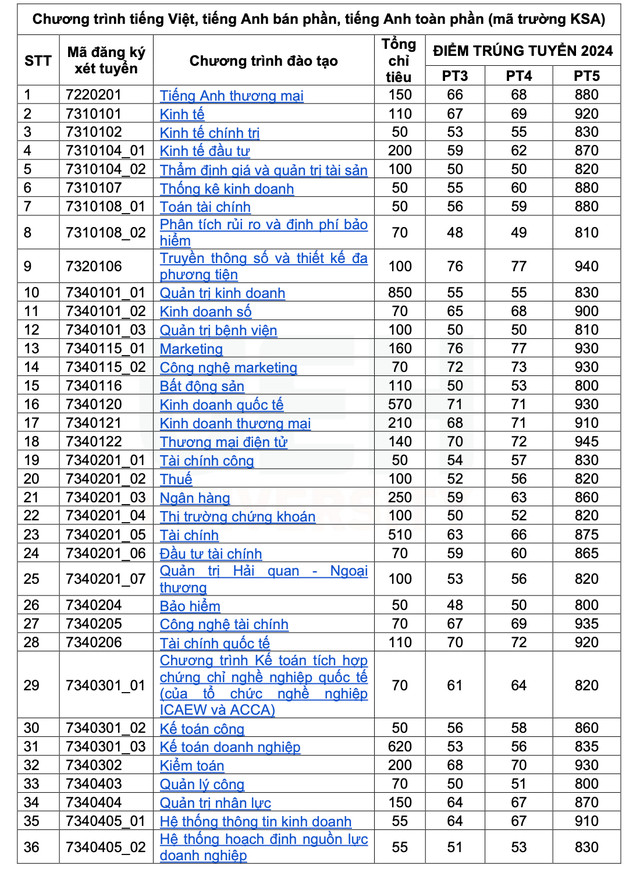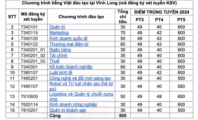 Điểm chuẩn cụ thể như sau: