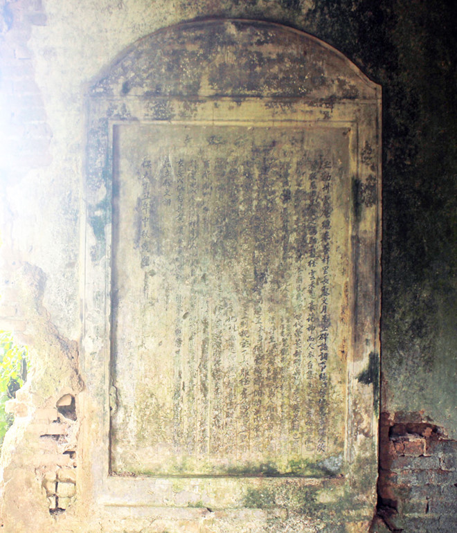 Văn bia trong ngôi đền ở làng Phụng Dưỡng