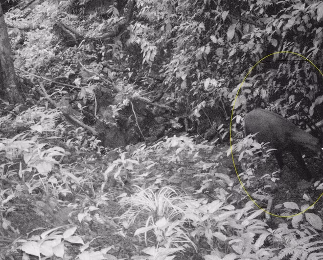 “Bẫy ảnh” ghi nhận bức hình sao la (bìa phải) tại Quảng Nam vào năm 2013. ẢNH: CHI CỤC KIỂM LÂM QUẢNG NAM