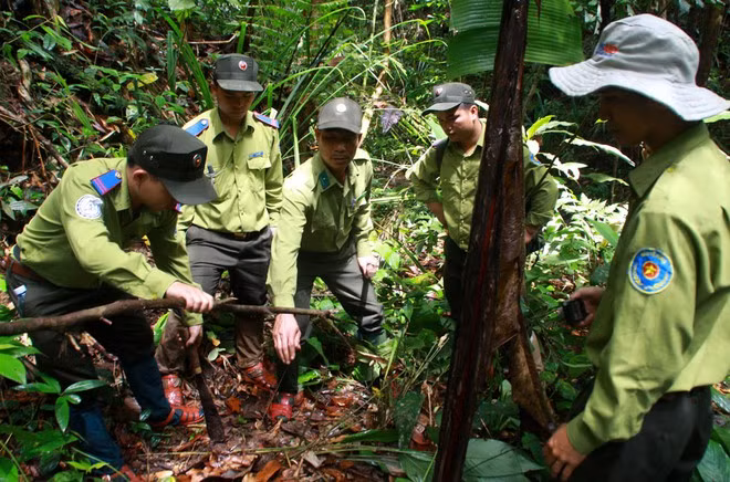 Đó là một ngày giữa mùa mưa. Nước từ các khe suối dâng lên cao, anh cùng một cán bộ khác len lỏi qua những cánh rừng ẩm ướt, vượt qua những vách đá dựng đứng để đến một con suối nhỏ. “Khu vực này tôi đã đặt “bẫy ảnh” trong nhiều tháng liền và ghi nhận có nhiều dấu vết sao la để lại trên đám môn thục. Đây là món khoái khẩu của sao la. Khác với các loài động vật khác, sao la khi gặp môn thục sẽ ăn đến tận gốc và ăn hết cả vạt”, anh Thắng kể.