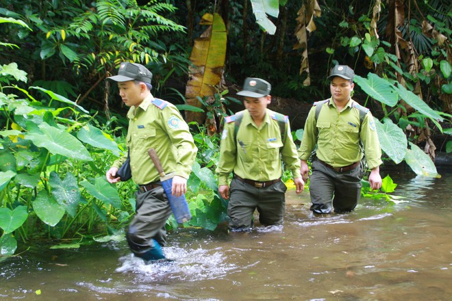 Nhân viên Khu bảo tồn sao la Quảng Nam cắt rừng, vượt suối thực hiện công tác bảo tồn loài sao la quý hiếm. ẢNH: HOÀNG SƠN