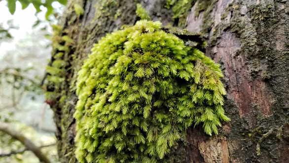 Trên thân bách có nhiều loài rêu xanh đẹp lạ lùng - Ảnh: THÁI LỘC