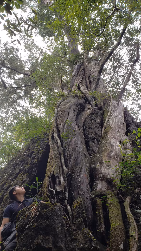 Tuấn bảo không biết bách xanh sống bằng gì ở đỉnh đá vôi này bởi thảm thực bì hầu như không đáng kể và tuyệt nhiên không có nước mặt. Bên một thân bách lớn, anh diễn giải: "Các chuyên gia bảo cây này tuổi chừng hơn 500 năm, được xem là "hóa thạch sống" của vùng rừng già Phong Nha - Kẻ Bàng này".
