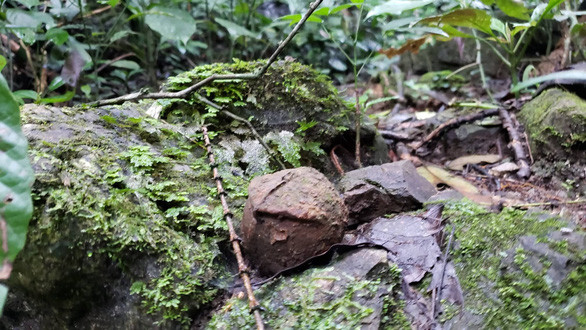 Trái bom bi nguy hiểm giữa rừng già - Ảnh: THÁI LỘC