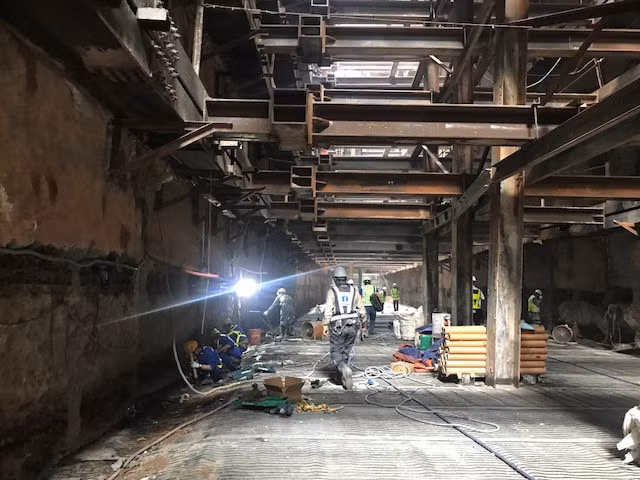 | Cũng trong hôm nay, (17.2), công tác phá dỡ tường vây vị trí tiếp giáp 2 gói thầu của đoạn ngầm là 1a và 1b đã hoàn thành, sớm hơn 3 ngày so với kế hoạch ban đầu - Ảnh: H.Mai |